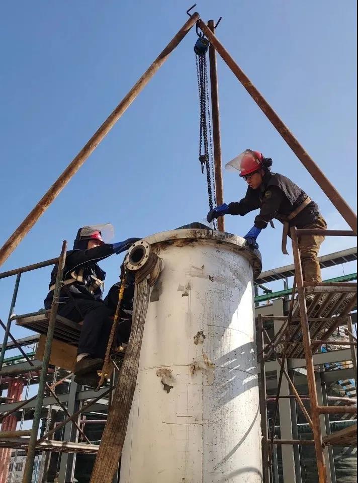 记得有一段时间,10度水一直偏离指标,我们庞师傅带头查找原因,紧盯生产一线,每隔一小时取样分析,不断在车间分析室来来回回,一个一个换热器逐一排查,以厂为家,在车间盯守,召集班长操作工开会从工艺各个角度分析。最后终于找到问题所在并顺利处理。又一次,换热器6308维修,焊工师傅们从早上开始干活,一直到晚上12点,一天的劳累没有让他们有一丝松懈,为了不耽误生产,他们急急忙忙吃过饭,又去了劳动现场,接着进行焊接,一直工作到后半夜安装好,才回去休息。