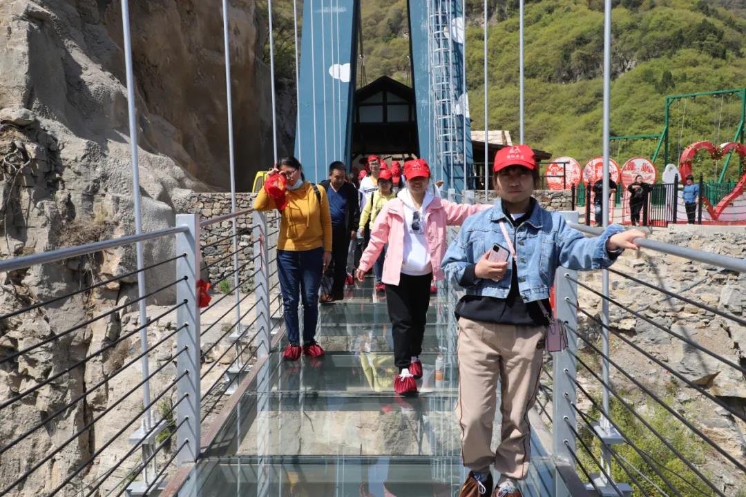 云丘山鸳鸯玻璃栈道,远远望去宛若一道晶莹剔透的滑冰场。大家伫立桥上观景,云丘山美景尽收眼底,纵横群山之间,恍若人间仙境,走在玻璃桥上如临深渊如履薄冰,有一种别样的感受。