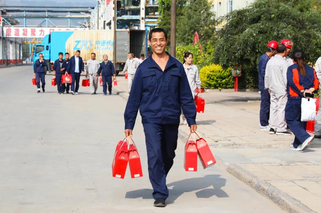 一份中秋礼品代表着美好祝愿,传递着对员工浓浓的关爱。员工脸上洋溢的幸福笑容是奋斗者最大的成果,是榆化发展最好的业绩。新时代,新征程,榆化人将用勤劳的双手开创更加美好的百年榆化新篇章,收获更大的幸福!
