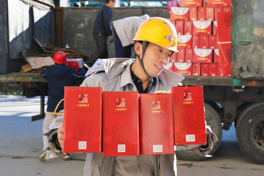 12月27日,公司各分厂办公楼前,一箱箱红枣福利整齐堆放,透过喜气洋洋的包装,都能够让人感受到幸福的味道。