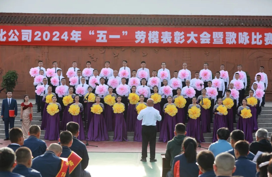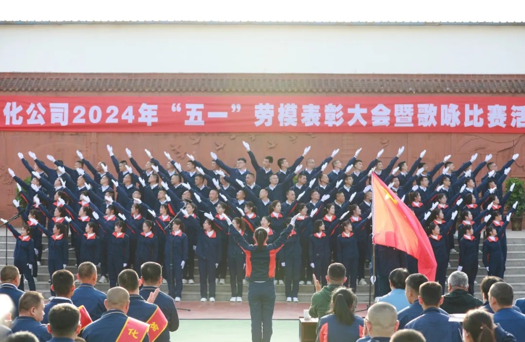 劳动节将至,公司篮球场旌旗飘扬,花团锦簇,处处洋溢着欢乐祥和的节日氛围。4月30日,榆化公司2024年“五一”劳动模范表彰大会暨歌咏比赛活动隆重举行。