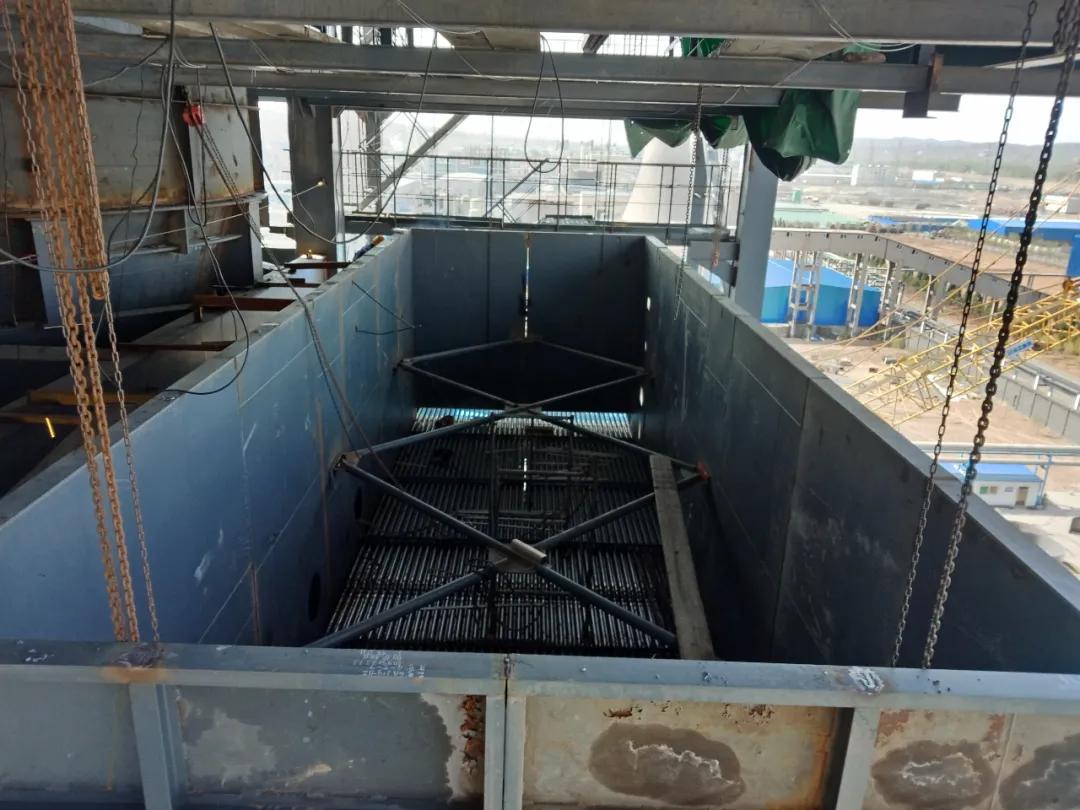 下降管已焊接完成,正在组对落渣管。